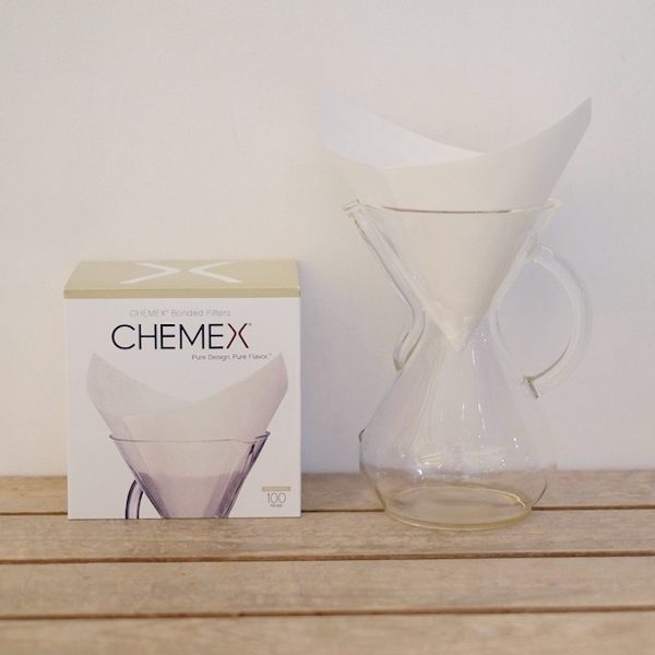 Square filter for the Chemex 6 cup. Already pre-folded, so please insert the three layer side to the Chemex’s spout.