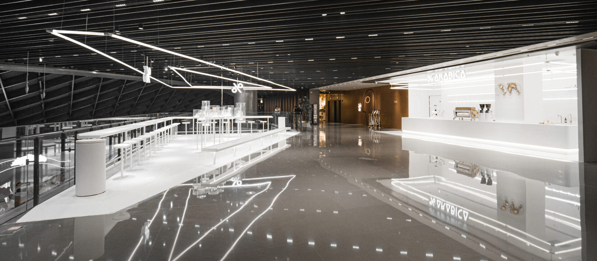 The shop is located on the mezzanine floor overlooking the floor’s main entrance, so it’s the perfect place to wait for friends to come or to relax while people watching.